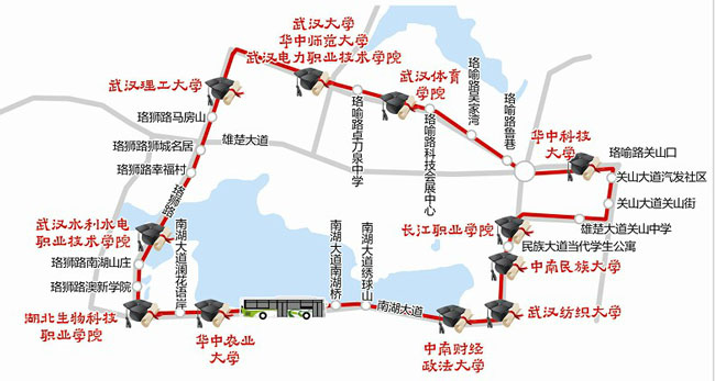 洪山区政府与公交集团沟通协商,由洪山区政府安排专项经费约1500万元,开通了校际之间的环线公交。