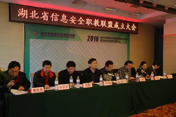 2016年1月10日,由湖北生物科技职业学院与神州数码网络(北京)有限公司共同承办的湖北省信息安全职教联盟成立大会在武汉隆重召开。出席本次大会的主要领导有全国高等院校计算机基础教育研究会高职高专专业委员会秘书长盛鸿宇,湖北日报社新媒体集团大数据中心主任、湖北省委省政府高级舆情分析师傅文仁,湖北省信息技术教学指导委员会主任王路群,湖北省教育厅教科院刘群,湖北生物科技职业学院党委书记、校长田曙曦,湖北生物科技职业学院副校长鲁性贵,湖北青年职业学院党委书记张红,仙桃职业学院副校长徐国洪等。参加本次大会的本科院校2所,高职院校27所,中职院校6所,信息安全行业企业9家。湖北日报、湖北广播电视台、荆楚网等媒体单位给予本次大会大力支持。参会总人数达120余人。