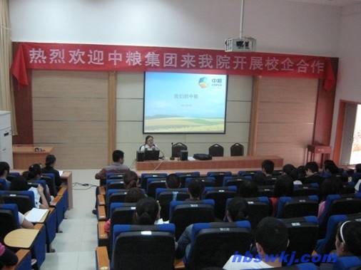 2011年5月31日,武汉中粮肉食品有限公司人力资源部宗蕾经理等一行五人来我院商谈校企合作事宜。动物科学系孙会兰主任、陈文钦副主任和张艳副主任及李国平老师、向金梅老师和张苗苗老师参加了座谈。之后,在学院学术报告厅,该公司负责人向09级食品专业、畜牧兽医专业和兽医专业全体学生介绍了公司基本情况,并进行了现场招聘活动。
