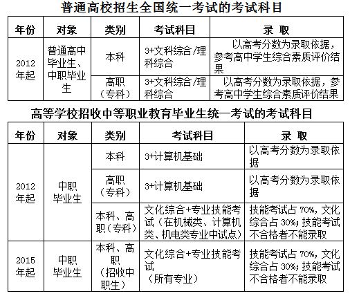 1、2015年起,全面实行以专业技能考试成绩为主的高等学校招收中等职业教育毕业生统考招生。