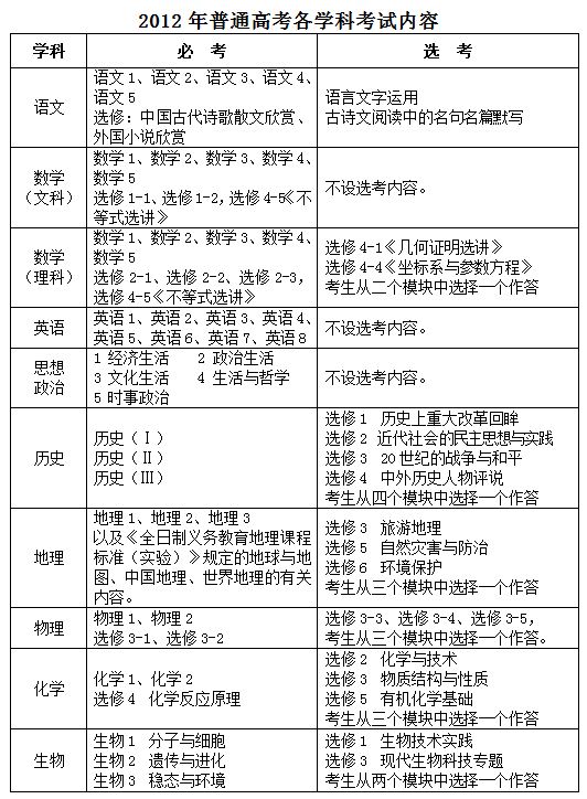 根据普通高等学校对新生文化素质的要求,依据教育部2003年颁布的《普通高中课程方案(实验)》、语文等9学科《课程标准》以及教育部考试中心颁布的课程标准实验版《考试大纲》,结合湖北省实施普通高中新课程的实际,确定普通高考各科目的考试范围。